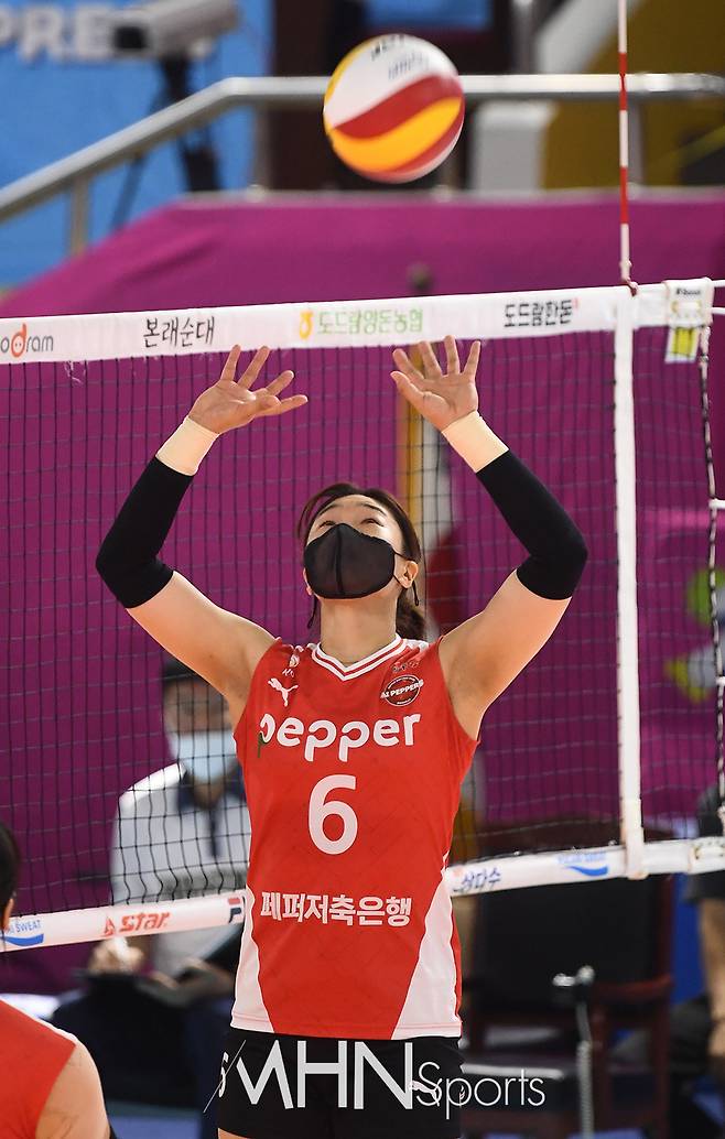페퍼저축은행 이고은이 세트를 시도하고 있다.