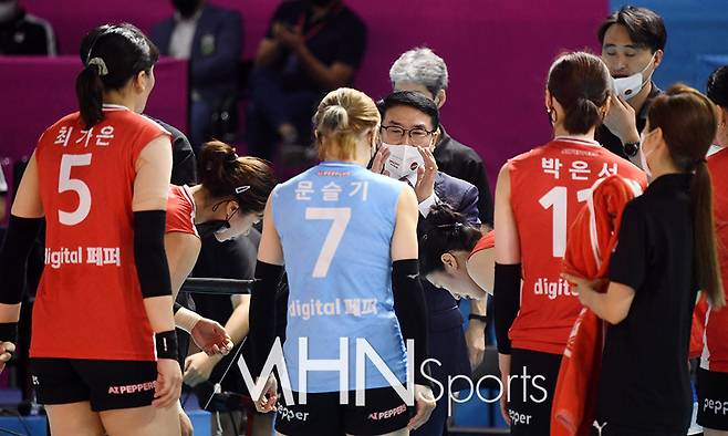김형실 페퍼저축은행 감독이 작전을 지시하고 있다.