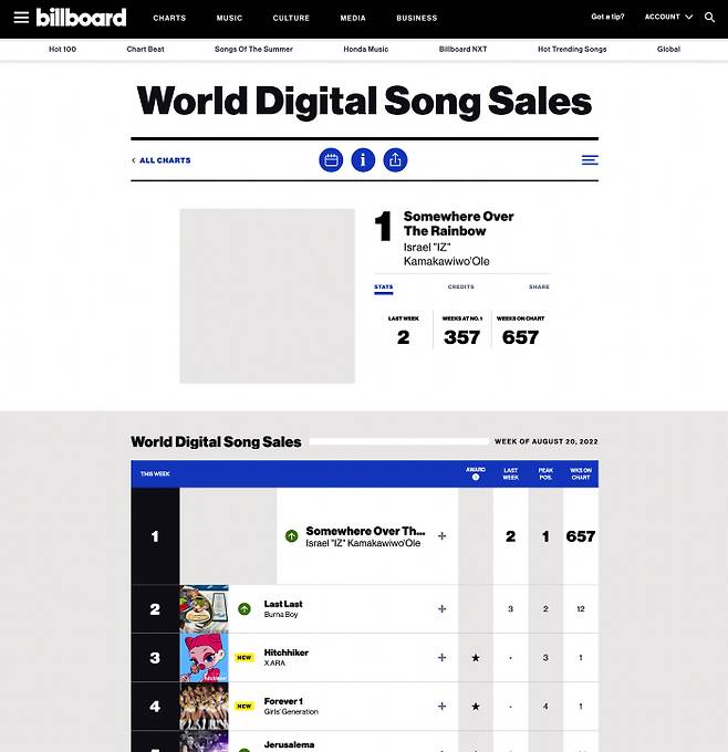이 기간동안 공개된 차트에서 한국 아티스트 중 가장 높은 순위다. 같이 차트에 진입한 소녀시대의 '포에버 원(FOREVER 1)'보다 높은 순위를 기록했다.