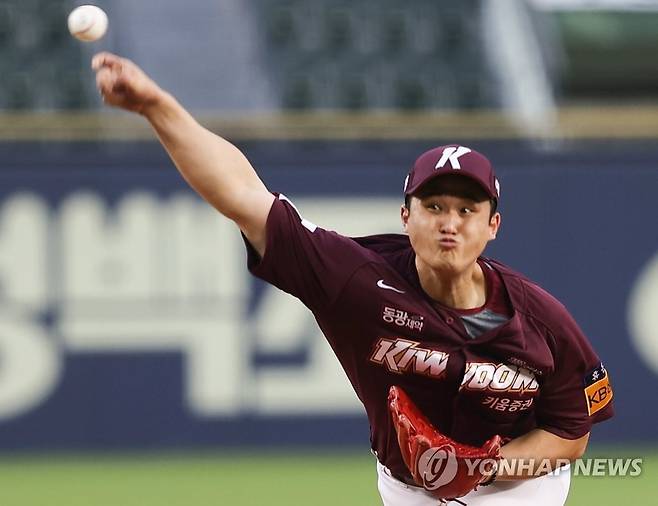 (서울=연합뉴스) 서대연 기자 = 18일 서울 송파구 잠실야구장에서 열린 2022 프로야구 KBO리그 키움 히어로즈와 두산 베어스의 경기. 1회말 키움 선발투수 최원태가 역투하고 있다. 2022.8.18
