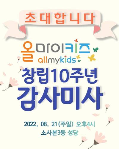 ‘올마이키즈’가 설립 10돌을 맞아 오는 21일 오후 4시 경기도 부천시 소사본3동성당에서 감사 미사를 올린다. 올마이키즈는 그동안 회원 3400여명이 십시일반 주머닛돈을 털어 24개국 44개 지역 1만4000여명의 아이를 도왔다. 가나, 가봉, 네팔, 방글라데시, 필리핀 등에 사는 아이들과 회원이 1 대 1 결연을 맺어 후원한다. 1인당 월 3만원씩, 그렇게 후원한 금액이 7월 말 현재 56억2000만원에 이르렀다.