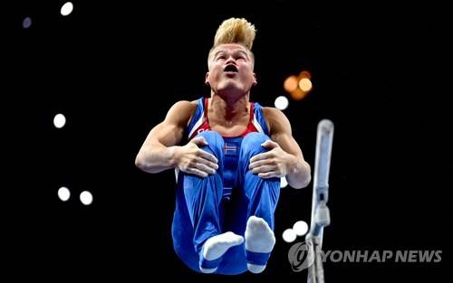 epa10127029 Martin Gudmundsson of Iceland performs on the Parallel Bars during the Artistic Gymnastics men's All-Around final at the European Championships Munich 2022, Munich, Germany, 18 August 2022. The championships will feature nine Olympic sports, Athletics, Beach Volleyball, Canoe Sprint, Cycling, Artistic Gymnastics, Rowing, Sport Climbing, Table Tennis and Triathlon. EPA/FILIP SINGER