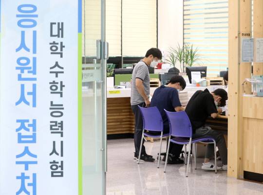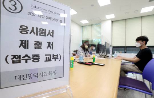 2023학년도 대학수학능력시험 응시원서 접수가 시작된 18일 대전시교육청에서 수험생들이 원서 접수를 하고 있다.