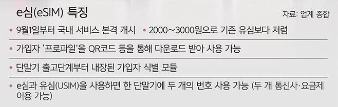 다음달부터 하나의 휴대전화로 두 개의 번호를 사용할 수 있는 'e심(eSIM)'이 국내에 상용화된다.