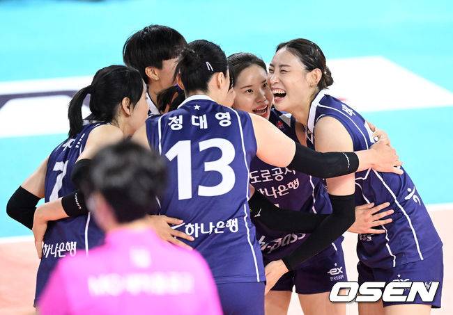1세트 한국도로공사 배유나가 동료들과 득점에 환호하고 있다. 2022.08.18 /sunday@osen.co.kr