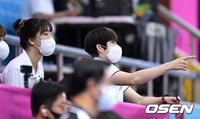 1세트 KGC인삼공사 정호영과 이소영이 관중석에서 경기를 바라보고 있다. 2022.08.18 /sunday@osen.co.kr
