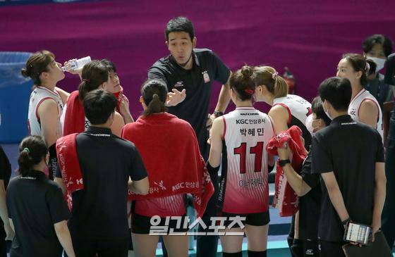 '2022 순천·도드람컵 프로배구대회' 한국도로공사와 KGC인삼공사의 경기가 18일 오후 전남 순천 팔마체육관에서 열렸다. 인삼공사 고희진 감독이 경기중 작전 지시하고있다.