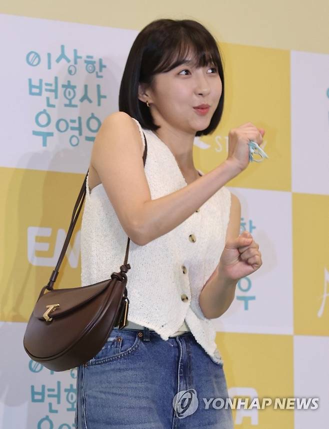 (서울=연합뉴스) 류효림 기자 = 배우 주현영이 18일 오후 서울 용산구 한강로동 CGV용산점에서 열린 드라마 '이상한 변호사 우영우' 마지막 회 단체관람 행사에서 포즈를 취하고 있다. 2022.8.18
