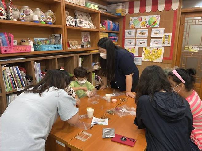 마산대 간호학과 GKNF서포터즈 학생들은 17일 창원시 마산회원구에 위치한 호계지역아동센터를 방문해 올바른 손씻기 교육 및 뷰박스 체험과 비누만들기, 퀴즈 게임 등 맞춤형 감염병 예방교육 프로그램을 진행했다.