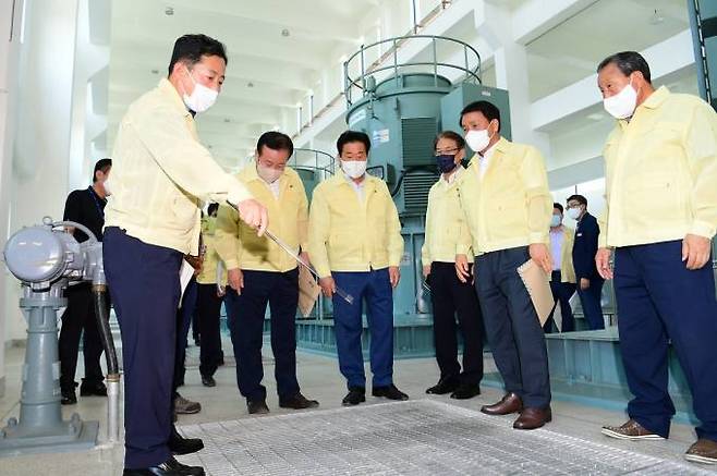 경상남도의회 김진부 의장, 강용범 제2부의장, 신종철 의회운영위원장, 박해영 건설소방위원장, 박병영 교육위원장은 18일 창원 양덕지구 우수저류시설 및 김해 한림배수장을 방문해 태풍·집중호우 대비 태세를 확인·점검했다.