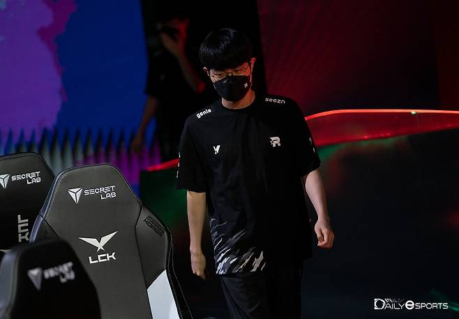 18일 오후 서울 종로구 그랑서울 롤파크 LCK 아레나에서 열린 2022 LCK 서머 플레이오프 1라운드 담원 기아와 kt 롤스터의 4세트서 승리한 '커즈' 문우찬이 5세트를 앞두고 경기석으로 복귀하고 있다.