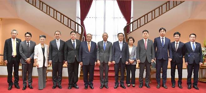 [서울=뉴시스] 조수정 기자 = 조용만 문화체육관광부 제2차관이 18일 제11차 아시아태평양경제협력체(APEC) 관광장관회의 참석차 태국 방콕을 방문해 태국 관광체육부 청사에서 피팟 랏차낏쁘라깐 태국 관광체육부 장관을 만나 23-24 한-태 상호방문의 해 추진 등 양국 간 관광 및 체육협력 확대 방안에 대해 논의한 뒤 기념촬영을 하고 있다. (사진=문화체육관광부 제공) 2022.08.18. photo@newsis.com