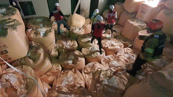3만 톤급인 이 선박에는 불이 날 당시 이미 1만 5천 톤이 실려 있어서 하역 작업도 같이 이뤄졌습니다.