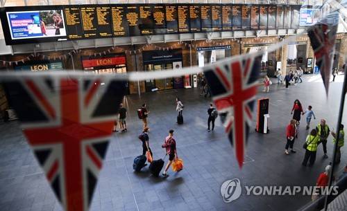 epa10127462 Commuters at Kings Cross Station in London, Britain, 18 August 2022. National rail strikes across Britain are causing major rail disruption amidst ongoing rail strikes, that have seen some forty thousand rail workers go out on strike over pay. EPA/ANDY RAIN