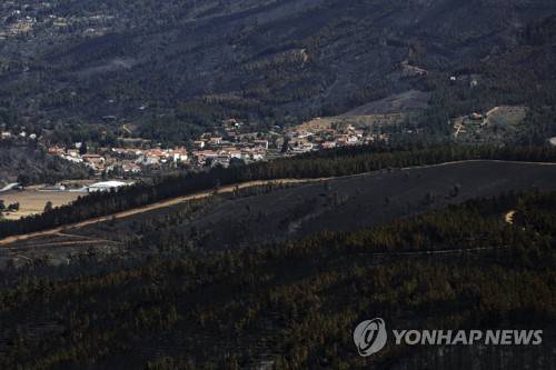 A partially charred forest after a wildfire in the Serra da Estrela national park, Portugal on Thursday, Aug. 18, 2022. Authorities in Portugal said Thursday they had brought under control a wildfire that for almost two weeks raced through pine forests in the Serra da Estrela national park, but officials warned a dangerous new heat wave is about to arrive. (AP Photo/Joao Henriques)