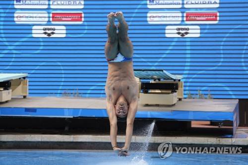 Jules Bouyer of France competes during Men's diving 1m springboard final at the European swimming championships, in Rome, Thursday, Aug. 18, 2022. (AP Photo/Gregorio Borgia)