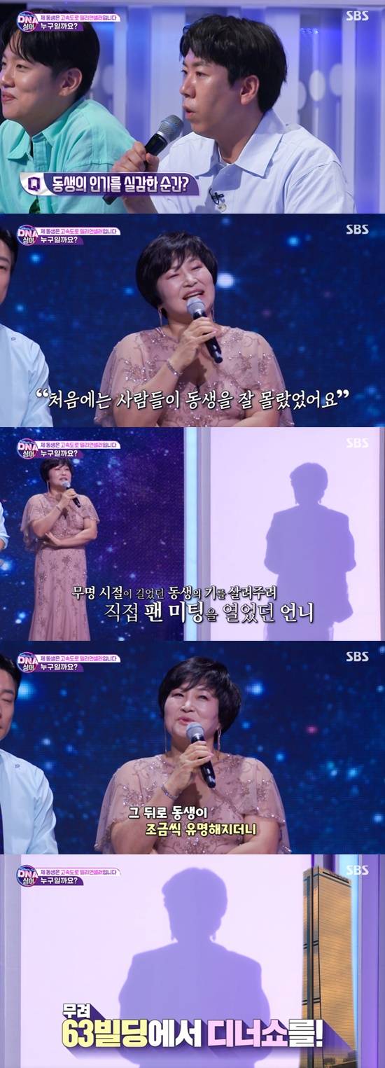 김옥은 "동생이 스타인 걸 언제 실감하냐"는 질문에 "처음에는 사람들이 잘 몰랐다. 무명 시절에 팬 미팅을 직접 열어 줬다. 그 뒤로 동생이 조금씩 유명해지더니 63빌딩에서 디너쇼를 할 정도가 됐다. 그때 동생이 스타가 됐다고 실감했다"고 대답했다.