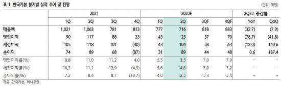 영업이익은 전년 동기 대비 78.7% 감소한 25억원을 기록했다. 매출 규모가 줄면서 판관비 부담이 늘어 마진이 다소 줄었다는 분석이다. 하나증권은 외형 회복으로 고정비 부담이 줄어들 것을 감안하면 하반기 이익률 회복 가능성이 높다고 판단했다. 세전이익은 104억원으로 직전 분기보다 크게 증가했는데, 신규 법인 인수에 따른 매수차익 인식이 주요 원인이라고 짚었다.