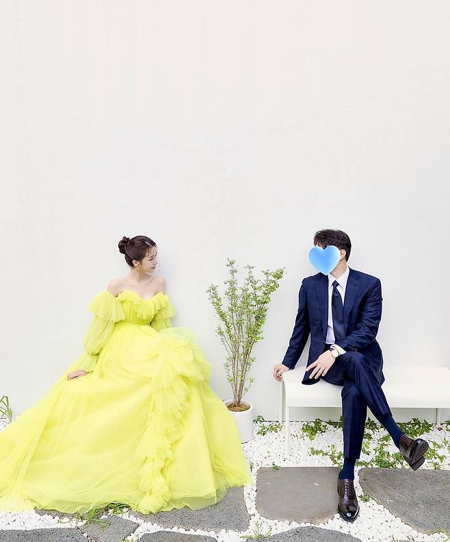형광빛의 옐로우 드레스를 입고 예비신랑과 마주보기도 했다. 쇼호스트 서송이는 "윤지야 축하해 그때 스쳐보았던! 너무 선남선녀"라며 축하했다.