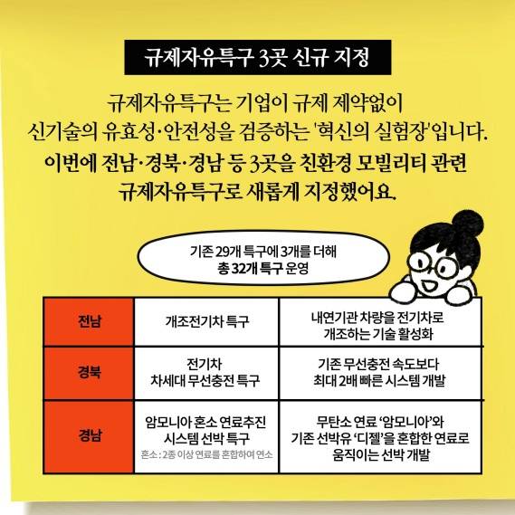 이번에 전남·경북·경남 등 3곳을 친환경 모빌리티 관련 규제자유특구로 새롭게 지정했어요.