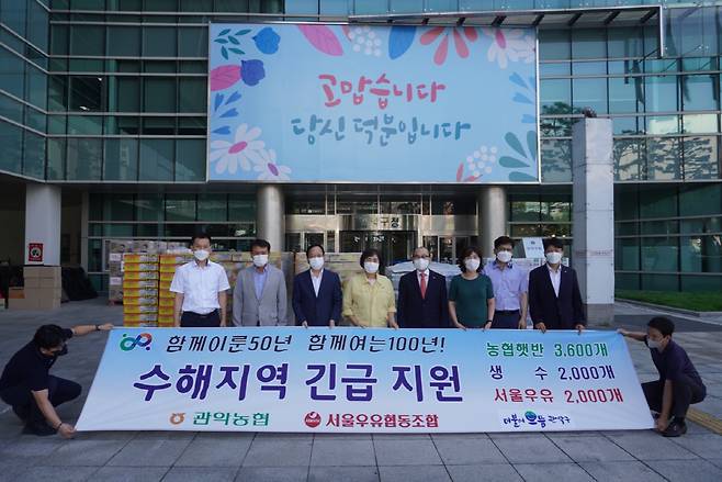 서울우유협동조합은 관악농협과 함께 서울우유 제품 2000개, 생수 2000개, 즉석밥 3600개의 구호물품을 관악구, 금천구, 동작구, 영등포구 4개 구청에 각각 전달할 예정이다.