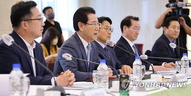 (서울=연합뉴스) 한상균 기자 = 29일 서울 프레지던트호텔에서 열린 '제50차 대한민국시도지사협의회 총회'에서 임시 의장인 김영록 전남도지사가 발언하고 있다. 2022.8.19