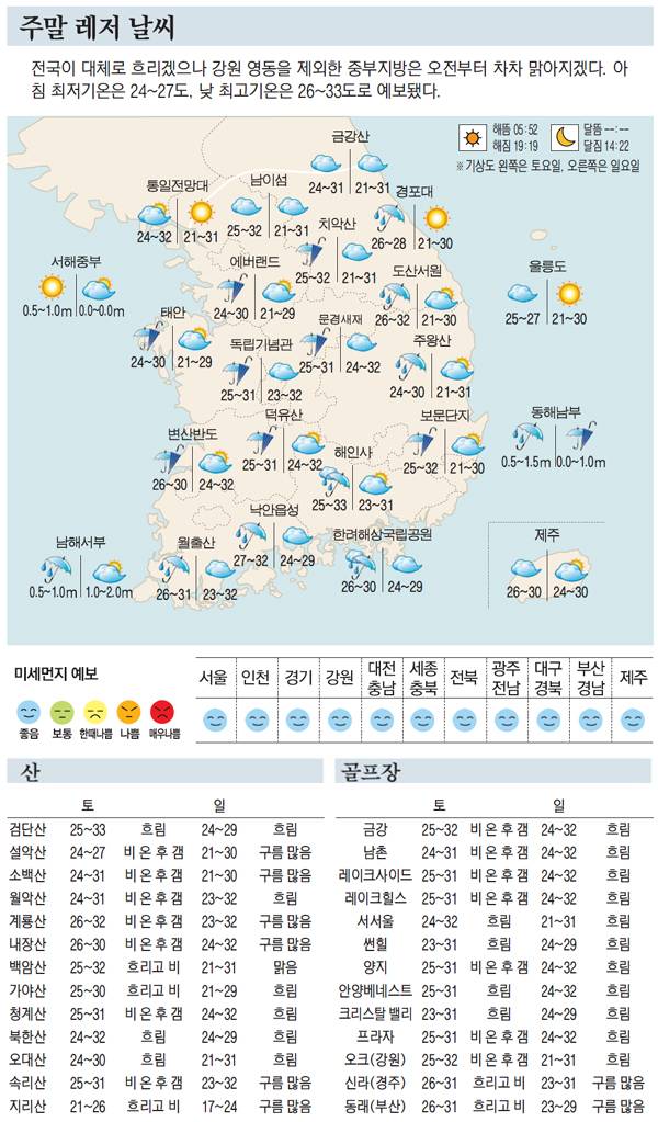 [표] 주말 레저 날씨 (8월 20일~8월 21일)