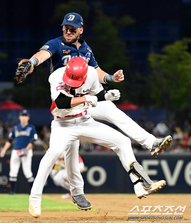 [포토] 태그 하는 마티니와 피하는 박찬호