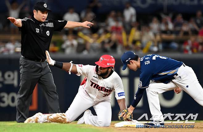 2022 KBO리그 NC 다이노스와 KIA 타이거즈의 경기가 19일 광주KIA챔피언스필드에서 열렸다. 3회말 1사 1,2루 KIA 소크라테스가 1타점 2루타를 치고 있다. 광주=허상욱 기자wook@sportschosun.com/2022.08.19/