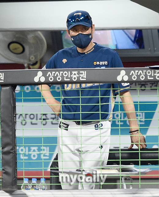 [마이데일리 = 광주 유진형 기자] NC 강인권 감독대행이 19일 오후 광주기아챔피언스필드에서 진행된 '2022 신한은행 SOL KBO리그' NC 다이노스와 KIA 타이거즈의 경기를 지켜보고 있다.