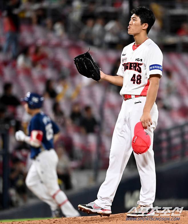 2022 KBO리그 NC 다이노스와 KIA 타이거즈의 경기가 19일 광주KIA챔피언스필드에서 열렸다. 4회초 NC 양의지가 솔로홈런을 날렸다. 홈런을 허용한 KIA 이의리가 아쉬워하고 있다. 광주=허상욱 기자wook@sportschosun.com/2022.08.19/