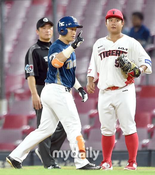 [마이데일리 = 광주 유진형 기자] NC 손아섭이 19일 오후 광주기아챔피언스필드에서 진행된 '2022 신한은행 SOL KBO리그' NC 다이노스와 KIA 타이거즈의 경기 4회초 1사 만루서 2타점 적시타를 친 뒤 기뻐하고 있다.