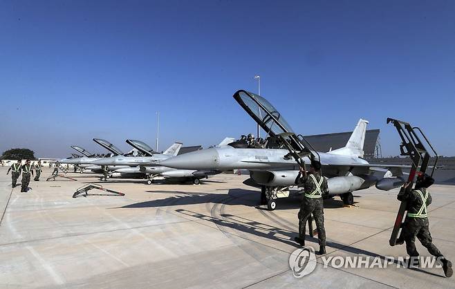 (서울=연합뉴스) 대규모 다국적 연합훈련인 피치 블랙 훈련에 최초로 참가하는 공군의 제19전투비행단 KF-16 전투기가 19일(현지시간) 호주 다윈 공군 기지에 착륙해 정비를 기다리고 있다.