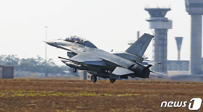 19일 피치 블랙 훈련에 참가하는 KF-16 전투기가 호주 다윈(Darwin) 공군 기지에 착륙하고 있다. (공군 제공) 2022.8.19/뉴스1