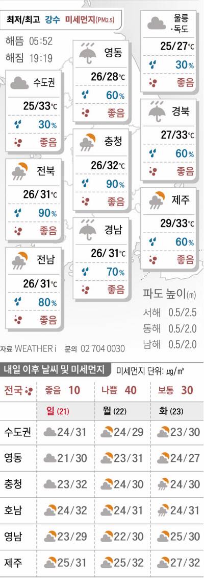 2022년 8월 20일 남부지방 오후 들어 비[오늘의 날씨]