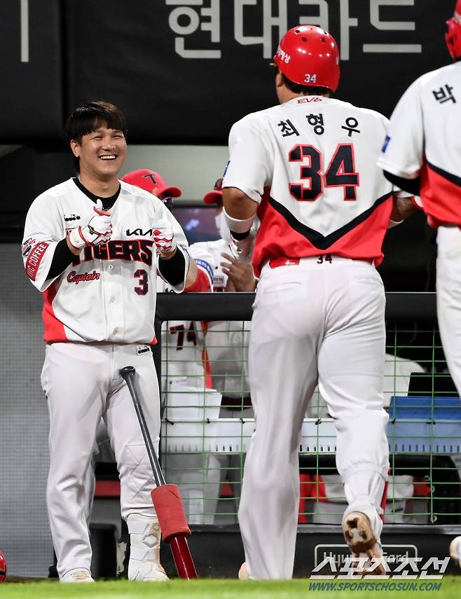 2022 KBO리그 NC 다이노스와 KIA 타이거즈의 경기가 19일 광주KIA챔피언스필드에서 열렸다. 7회말 2사 1,2루 KIA 최형우가 동점 3점홈런을 치고 김선빈과 기쁨을 나누고 있다. 광주=허상욱 기자wook@sportschosun.com/2022.08.19/