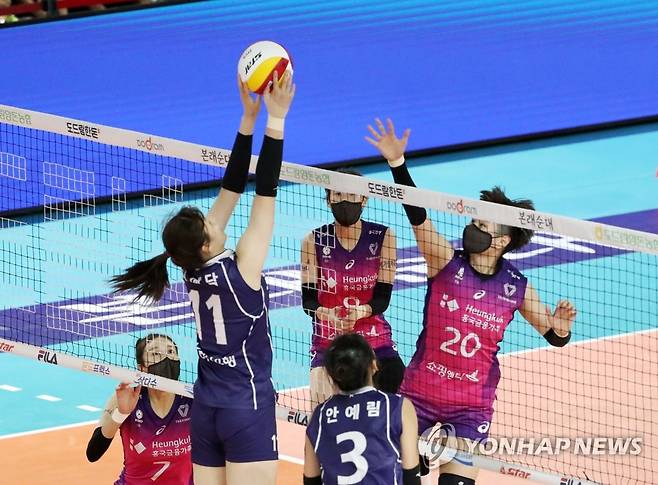 (순천=연합뉴스) 천정인 기자 = 19일 전남 순천시 팔마체육관에서 열린 2022 순천·도드람컵 프로배구대회 여자부 준결승 한국도로공사와 흥국생명의 경기. 3세트 한국도로공사 이예담 선수가 공격하고 있다. 2022.8.19
