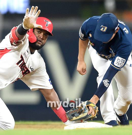 [마이데일리 = 광주 유진형 기자] KIA 소크라테스가 19일 오후 광주기아챔피언스필드에서 진행된 '2022 신한은행 SOL KBO리그' NC 다이노스와 KIA 타이거즈의 경기 3회말 2사 1.2루서 1타점 2루타를 친 뒤 기뻐하고 있다.