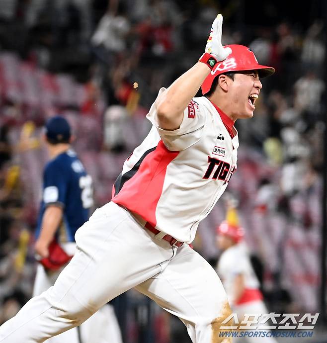 2022 KBO리그 NC 다이노스와 KIA 타이거즈의 경기가 19일 광주KIA챔피언스필드에서 열렸다. 연장 10회말 1사 1,2루 KIA 이창진이 끝내기 3점홈런을 치고 환호하고 있다. 광주=허상욱 기자wook@sportschosun.com/2022.08.19/