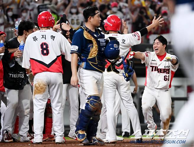 2022 KBO리그 NC 다이노스와 KIA 타이거즈의 경기가 19일 광주KIA챔피언스필드에서 열렸다. 연장 10회말 1사 1,2루 KIA 이창진이 끝내기 3점홈런을 치고 환호하고 있다. 광주=허상욱 기자wook@sportschosun.com/2022.08.19/