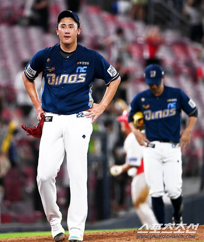 2022 KBO리그 NC 다이노스와 KIA 타이거즈의 경기가 19일 광주KIA챔피언스필드에서 열렸다. 연장 10회말 1사 1,2루 KIA 이창진이 끝내기 3점홈런을 날렸다. 홈런을 내준 NC 이용찬과 노진혁이 아쉬워하고 있다. 광주=허상욱 기자wook@sportschosun.com/2022.08.19/