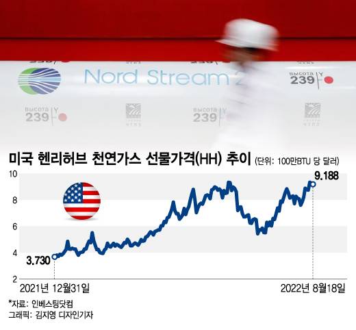 지난 18일(현지시간) 북미 천연가스 가격 지표인 미국 헨리허브 천연가스 선물가격은 전 거래일 보다 -0.61 % 하락한 100만BTU(열량단위) 당 9.188달러를 기록했다. 지난 16일엔 100만BTU당 9.329달러를 기록하며 2008년 8월 이후 약 14년 만에 최고치를 기록했다.