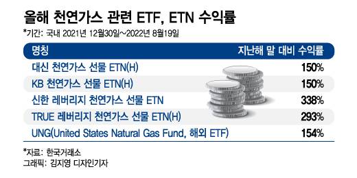 올해 초부터 천연가스 선물가격을 추종하는 상장지수펀드(ETF), 상장지수증권(ETN)의 수익률이 좋았다. 대신 천연가스 선물 ETN(H)은 지난해 말 보다 약 150% 증가했다. 혹은 천연가스를 공급, 판매하는 국내 기업들에 투자하는 것도 대안으로 꼽힌다. 천연가스 관련 기업으론 삼천리, 한국가스공사, 지에스이, 경동도시가스 등이 있다.