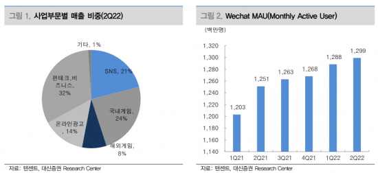 단기 적으로 게임과 광고 부문의 반등 가능성은 제한적이다. 다만 장기적으론 회복세를 보일 것으로 예상된다. 광고 부문은 위챗 내에서 새롭게 시도하는 비디오 어카운트(숏비디오 서비스)가 핵심이다. 7월부터 광고를 도입하면서 예상보다 빠르게 수익화 진행 중이며 위챗 모멘트 광고보다 램프업 속도도 빠를 것으로 전망된다.