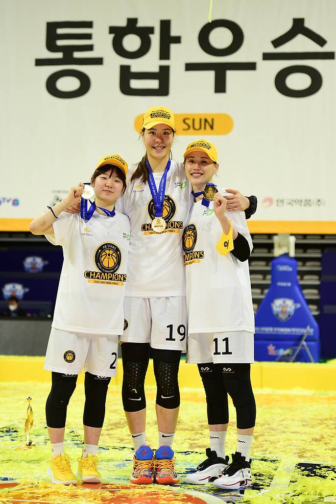 그런데 저희가 첫 경기에서 삼성생명을 이겼고, (염)윤아 언니가 “너희에게 우승의 기운이 온 것 같다”고 했어요. 저는 속으로 ‘윤아 언니의 감이 틀린 것 같다‘고 생각했죠.(웃음) 하지만 언니의 말이 정확하게 들어맞았어요. 제가 아마 그렇게 이야기한다면(박신자컵 우승의 기운이 통합 우승까지 이어졌다), 진경석 코치님께서 좋아하실 거예요.(웃음)