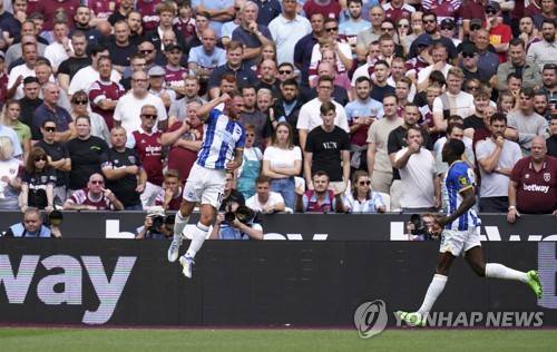 Brighton and Hove Albion's Alexis Mac Allister celebrates scoring during the English Premier League soccer match at London Stadium, London, Sunday Aug. 21, 2022. (John Walton/PA via AP) UNITED KINGDOM OUT; NO SALES; NO ARCHIVE; PHOTOGRAPH MAY NOT BE STORED OR USED FOR MORE THAN 14 DAYS AFTER THE DAY OF TRANSMISSION; MANDATORY CREDIT