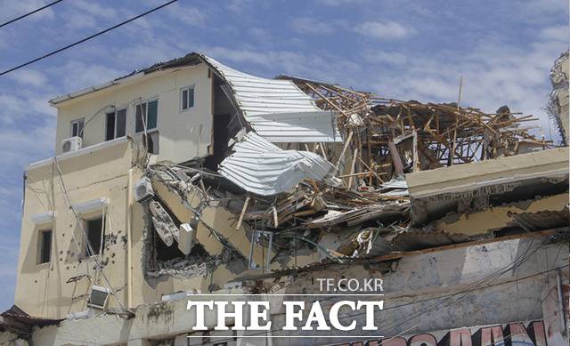 [더팩트|이선화 기자] 20일(현지시간) 아프리카 소말리아의 수도 모가디슈에서 벌어진 이슬람 무장단체의 호텔 테러극으로 인해 하얏트 호텔이 처참히 무너져 있다.