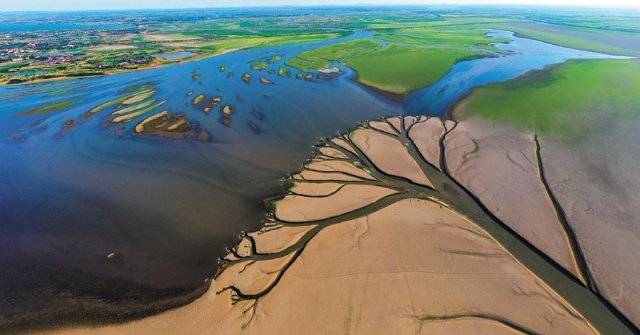 폭염-가뭄에 흙바닥 드러낸 中 최대 담수호 21일 중국 남부 장시성 난창에 있는 중국 최대 담수호 포양호가 최근 계속된 폭염과 가뭄에 말라 흙바닥이 드러난 모습. 이 호수는 평년보다 100일 이상 건기가 빨리 찾아온 탓에 최근 면적이 두 달 전인 6월에 비해 4분의 3으로 줄었다. 지난달부터 계속된 유례없는 폭염으로 포양호와 이어진 양쯔강의 수위 또한 빠르게 낮아지고 있다. 게티이미지코리아