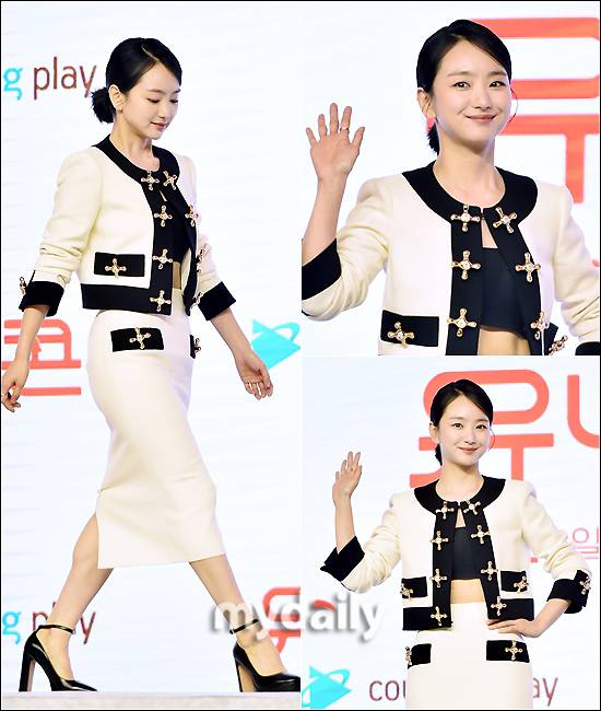 이날 제작발표회에 참석한 원진아는 화이트 색상에 블랙과 십자가 모양의 장식이 매치된 투피스 의상으로 등장해 눈길을 끌었다. 귀여운 외모와는 달리 우아함이 가득한 의상은 취재진의 관심을 모으기에 충분했다. 특히 안으로 탑을 매치해 복근이 자연스럽게 노출되도록 해 약간의 섹시미를 더했다.