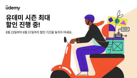 할인 이벤트는 8월 23일부터 31일까지 진행하며, IT 개발, 데이터분석, 비즈니스, 어학 등 유데미의 모든 강의를 최대 85% 할인된 가격으로 만나볼 수 있다. 보다 자세한 내용은 유데미 홈페이지를 통해 확인할 수 있다.